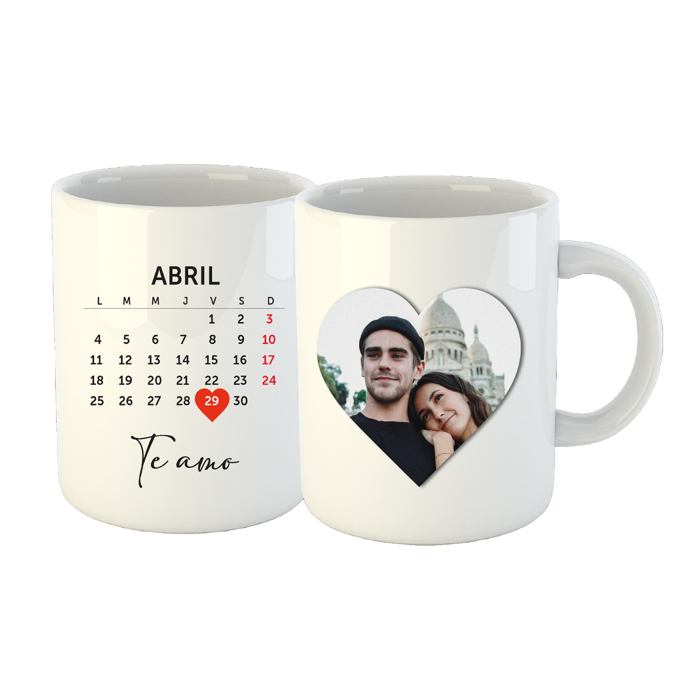 6 tazas blancas personalizadas con capacidad para 11 onzas, más 6 llaveros en acrílico troquelado medidas 2.25 pulgadas con impresión personalizada.